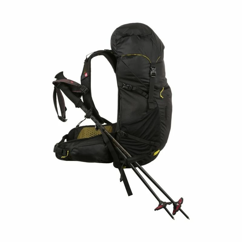 Le Yari 34 Airflow est un sac à dos de randonnée de la marque Millet, idéal pour les escapades estivales à la journée grâce à son système de portage ventilé et son équipement très fonctionnel. Le Yari 34 Airflow dispose d’un dos, dont la conception permet de laisser l’air circuler entre le sac et son porteur, pour un sentiment de fraîcheur tout au long de votre journée. S’ajoutent à cela des bretelles ventilées avec rappel de charge, ainsi qu’une ceinture confortable, qui permettent de positionner au mieux la charge, pour un confort optimal. Les sangles de compression du Yari 34 Airflow permettent d’ajuster le volume de ce sac à dos de randonnée, mais également d’y fixer des bâtons de randonnée sur les côtés. En plus du large compartiment principal, dans lequel vous pourrez ranger des vêtements ou un repas complet, plusieurs passants vous permettront d’attacher votre matériel d’escalade ou de randonnée sur l’extérieur ou sous le Yari 34 Airflow.